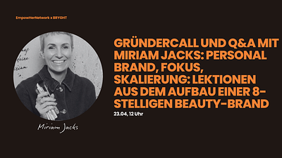 "Gründercall und Q&A mit Miriam Jacks: Personal Brand, Fokus, Skalierung: Lektionen aus dem Aufbau einer 8-stelligen Beauty-Brand